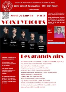 Nous accueillerons cinq solistes de talent issus du Chœur de l’Opéra National de Lorraine. Accompagnés par le pianiste et maître de chant Vincent ROYER, ils vous proposent un programme exceptionnel composé des chefs-d’œuvre les plus célèbres du répertoire lyrique. Que vous soyez mélomane ou simplement curieux, vous reconnaîtrez sans aucun doute ces airs intemporel (voir programmation).